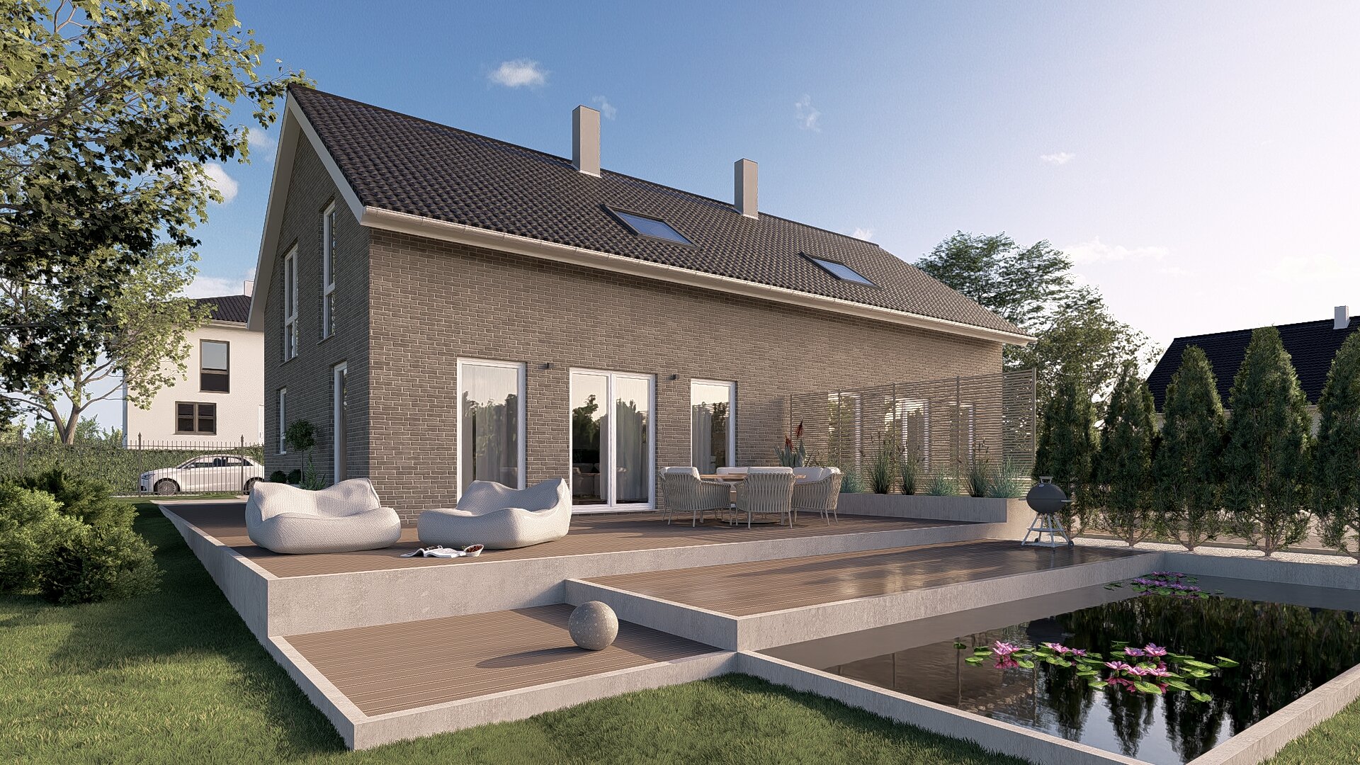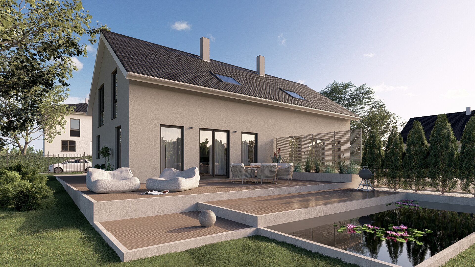 Die großzügige Raumaufteilung und die helle Atmosphäre machen dieses Doppelhaus zu einem Ort, an dem man sich wirklich wohlfühlt.