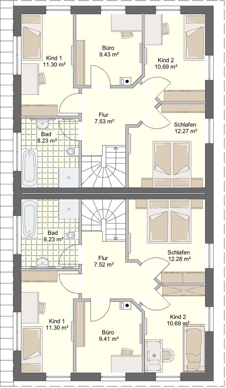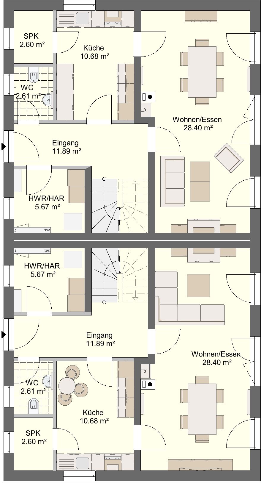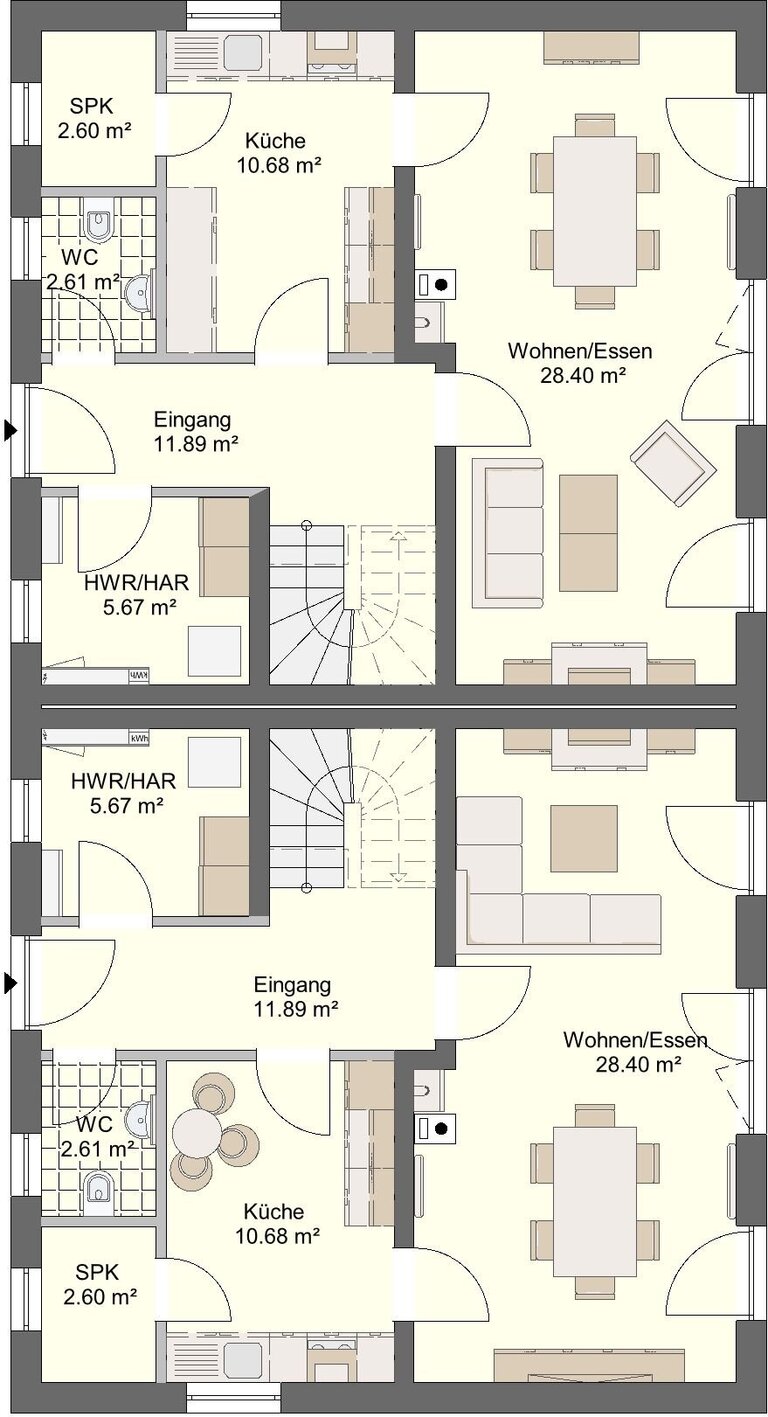 Die großzügige Raumaufteilung und die helle Atmosphäre machen dieses Doppelhaus zu einem Ort, an dem man sich wirklich wohlfühlt.