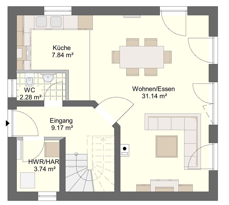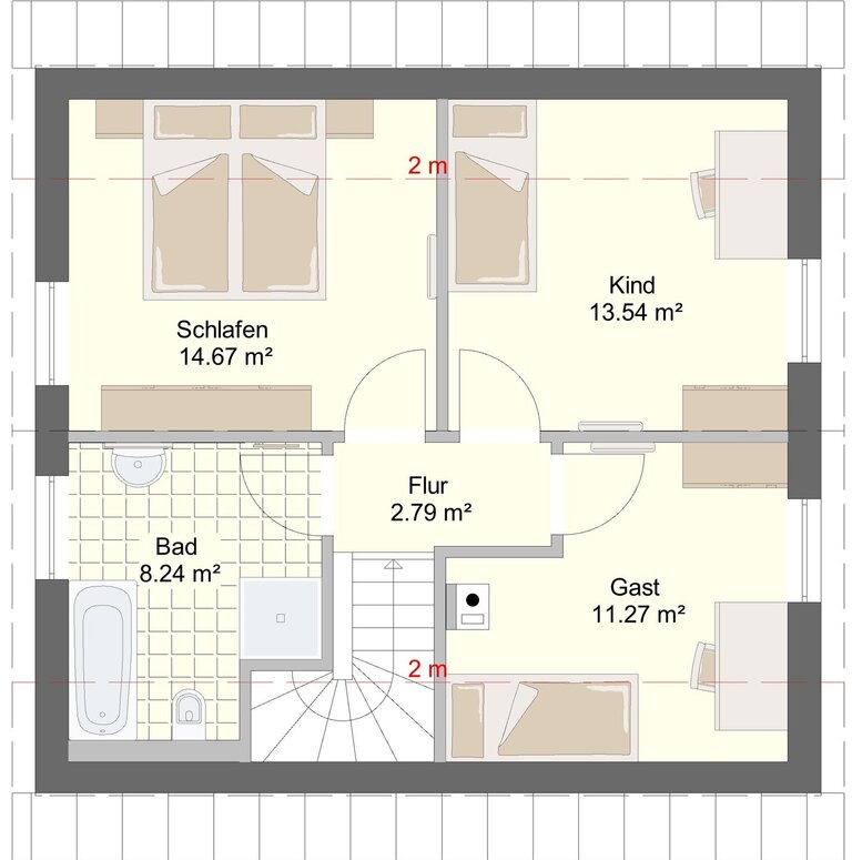 Mit ausreichend Platz für alle Bewohner und individuellen Gestaltungsmöglichkeiten ist das Massivhaus eine gute Wahl für entspanntes Wohnen.