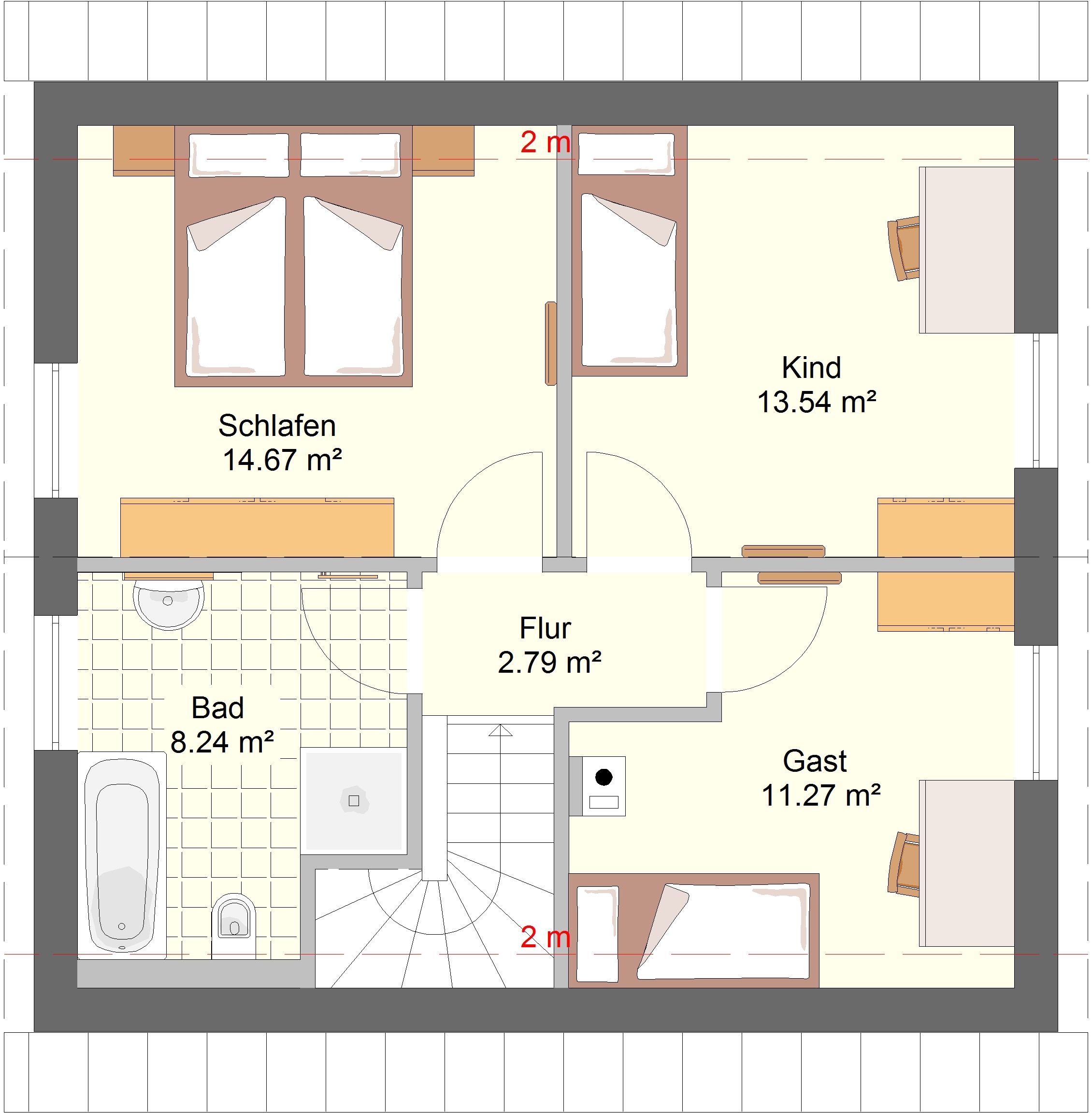 Dank der durchdachten Raumaufteilung und der hochwertigen Ausstattung ist das Idealo 105 SD mit eine Kniestockhöhe von 190cm ein Haus, in dem man sich rundum wohlfühlen kann.