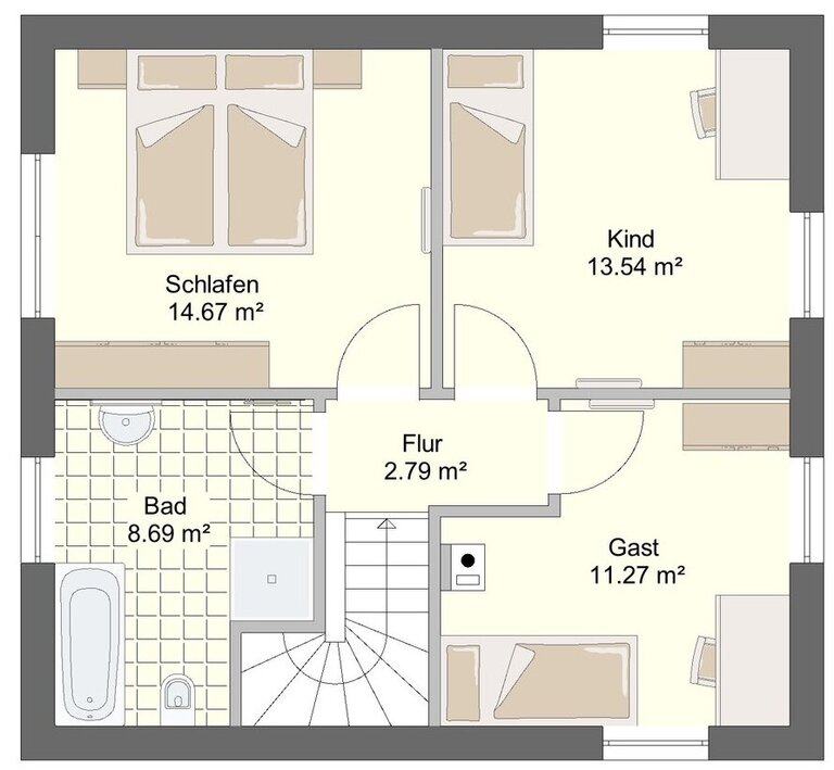 Mit ausreichend Platz für alle Bewohner und individuellen Gestaltungsmöglichkeiten ist das Massivhaus eine gute Wahl für entspanntes Wohnen.