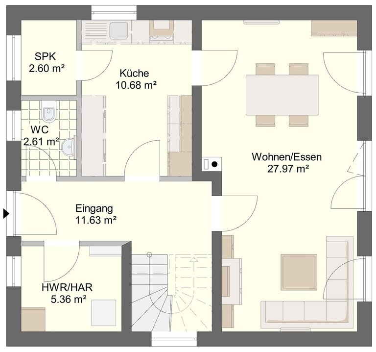 Dank einer durchdachten Bauweise und moderner Haustechnik entspricht das Haus den Anforderungen an ein KfW-Effizienzhaus 55.
