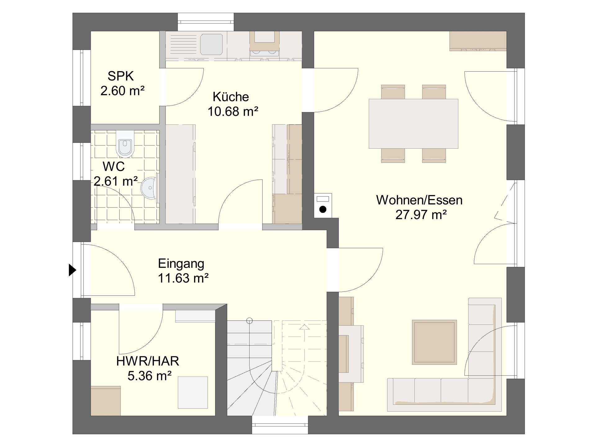 Dank einer durchdachten Bauweise und moderner Haustechnik entspricht das Haus den Anforderungen an ein KfW-Effizienzhaus 55.