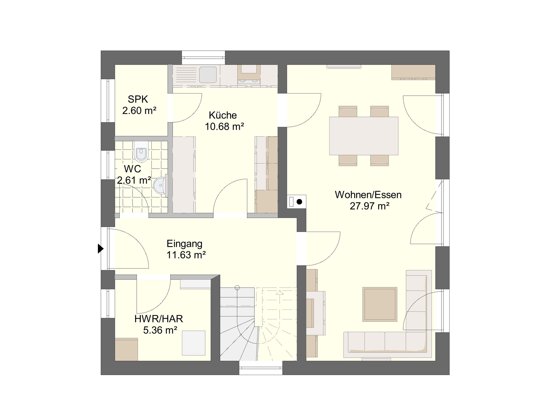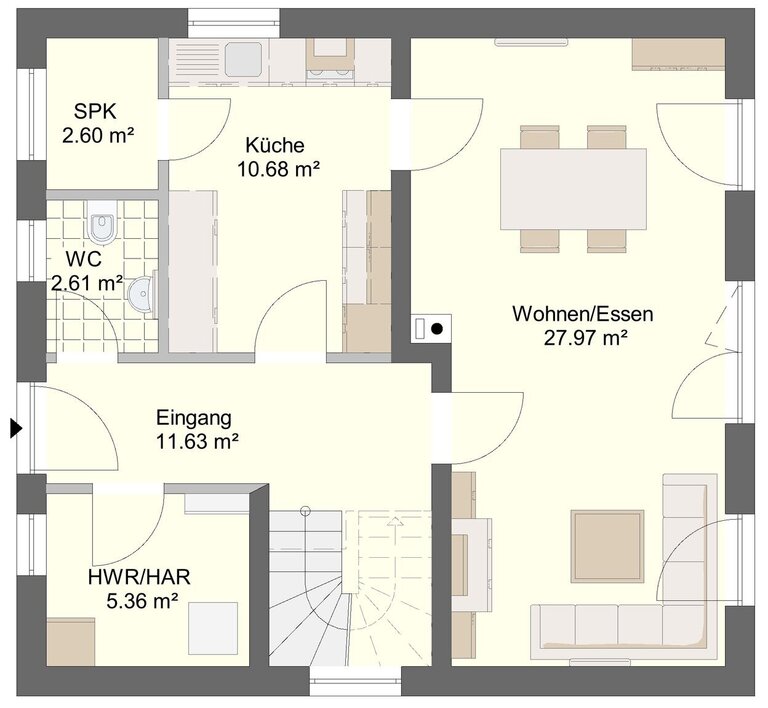 Dank einer durchdachten Bauweise und moderner Haustechnik entspricht das Haus den Anforderungen an ein KfW-Effizienzhaus 55.