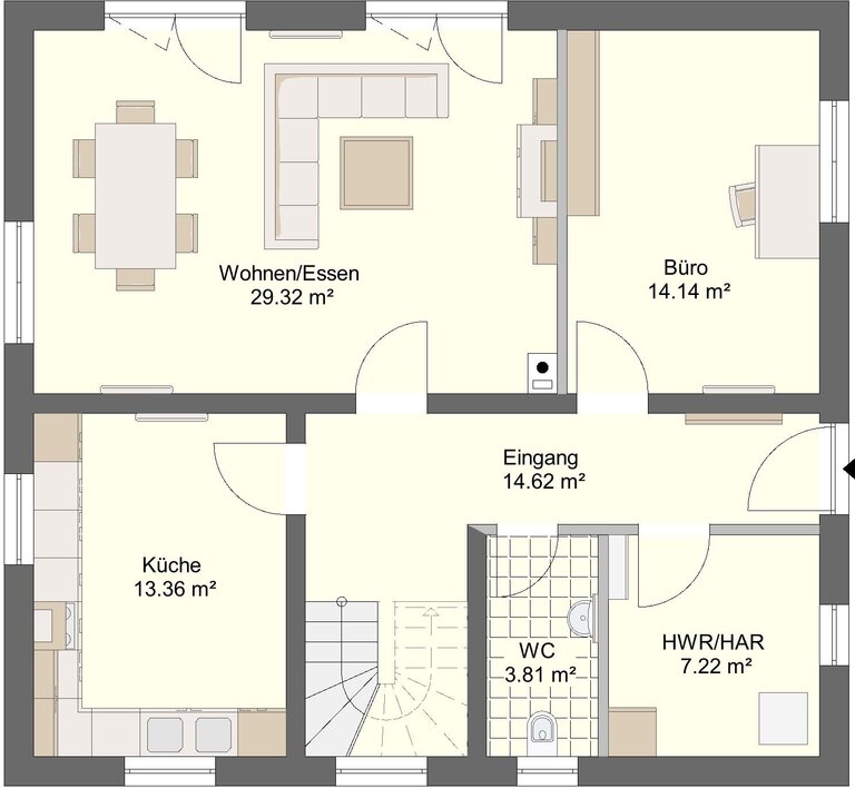 Die großzügige Raumaufteilung und die helle Atmosphäre machen dieses Haus zu einem Ort, an dem man sich wirklich wohlfühlt.