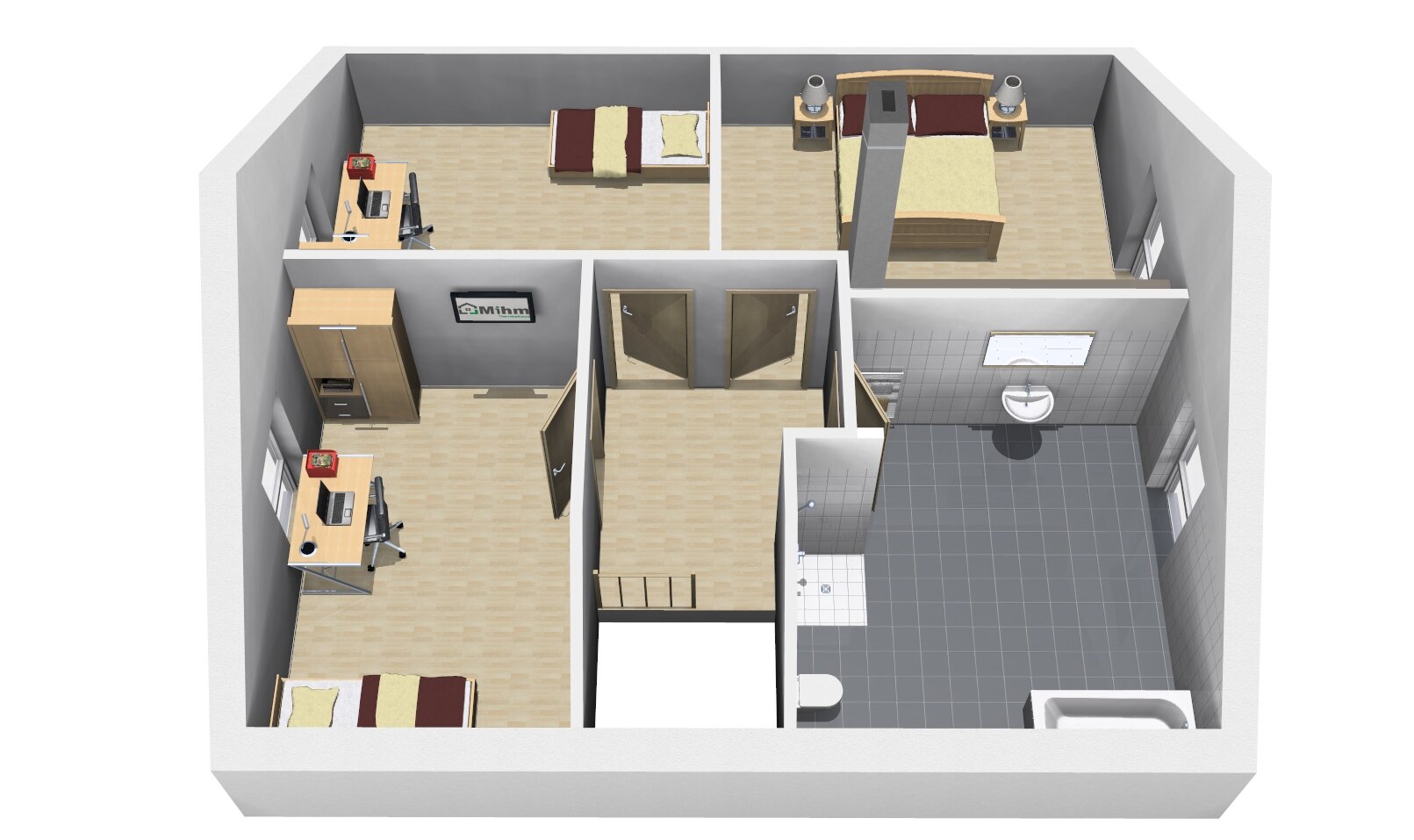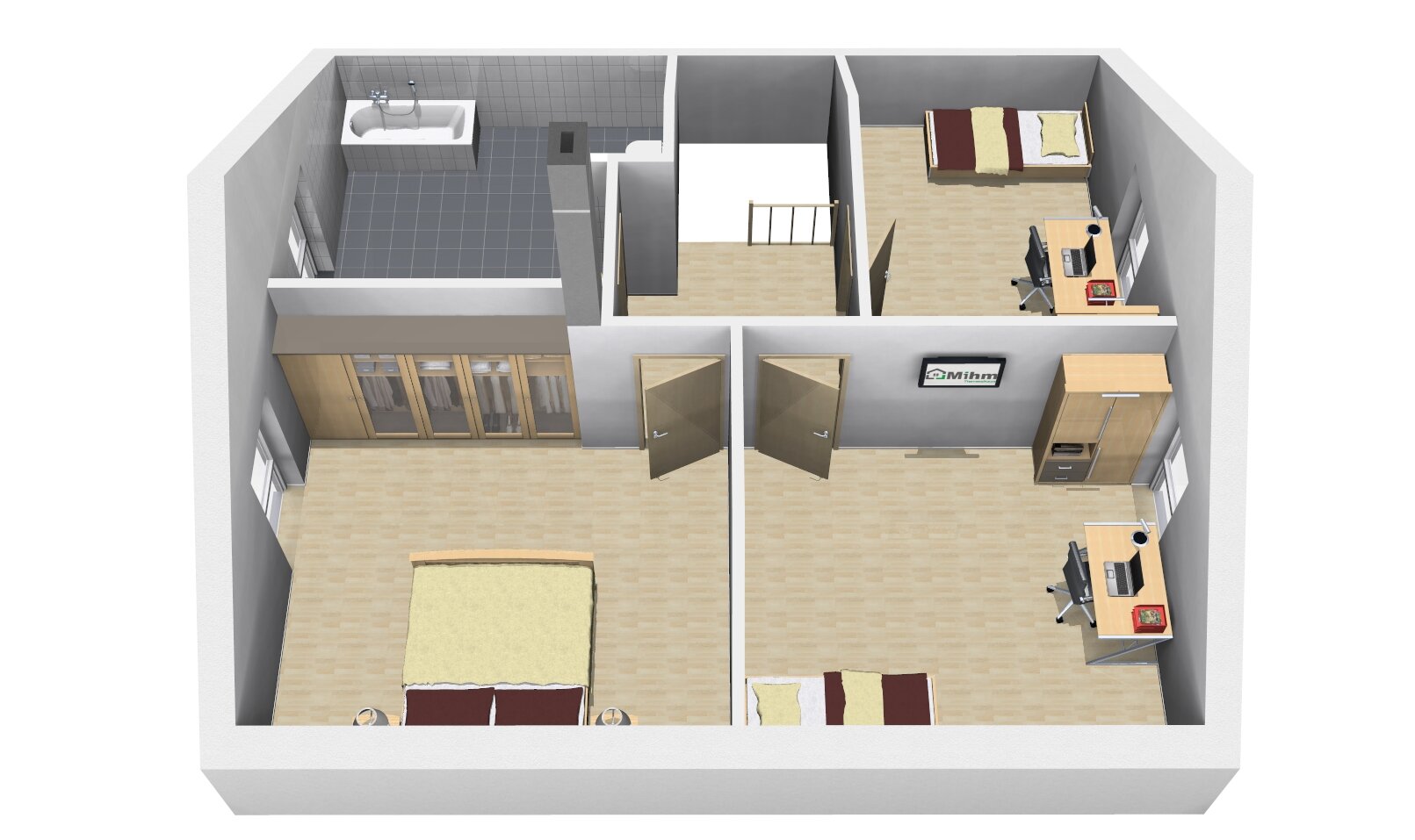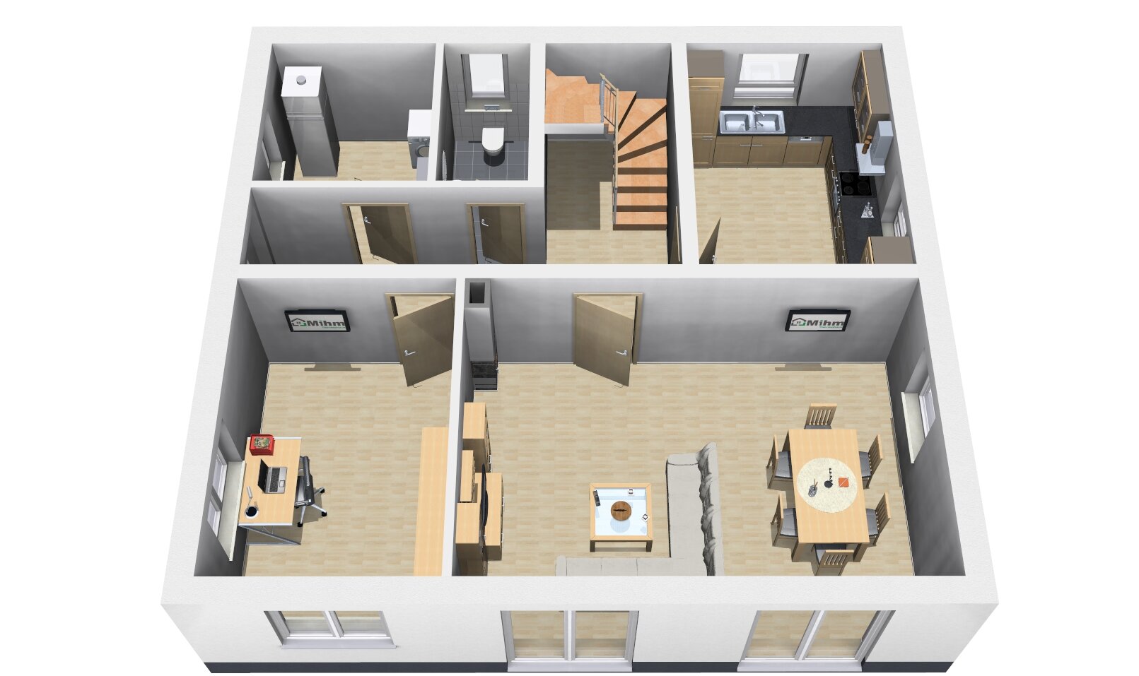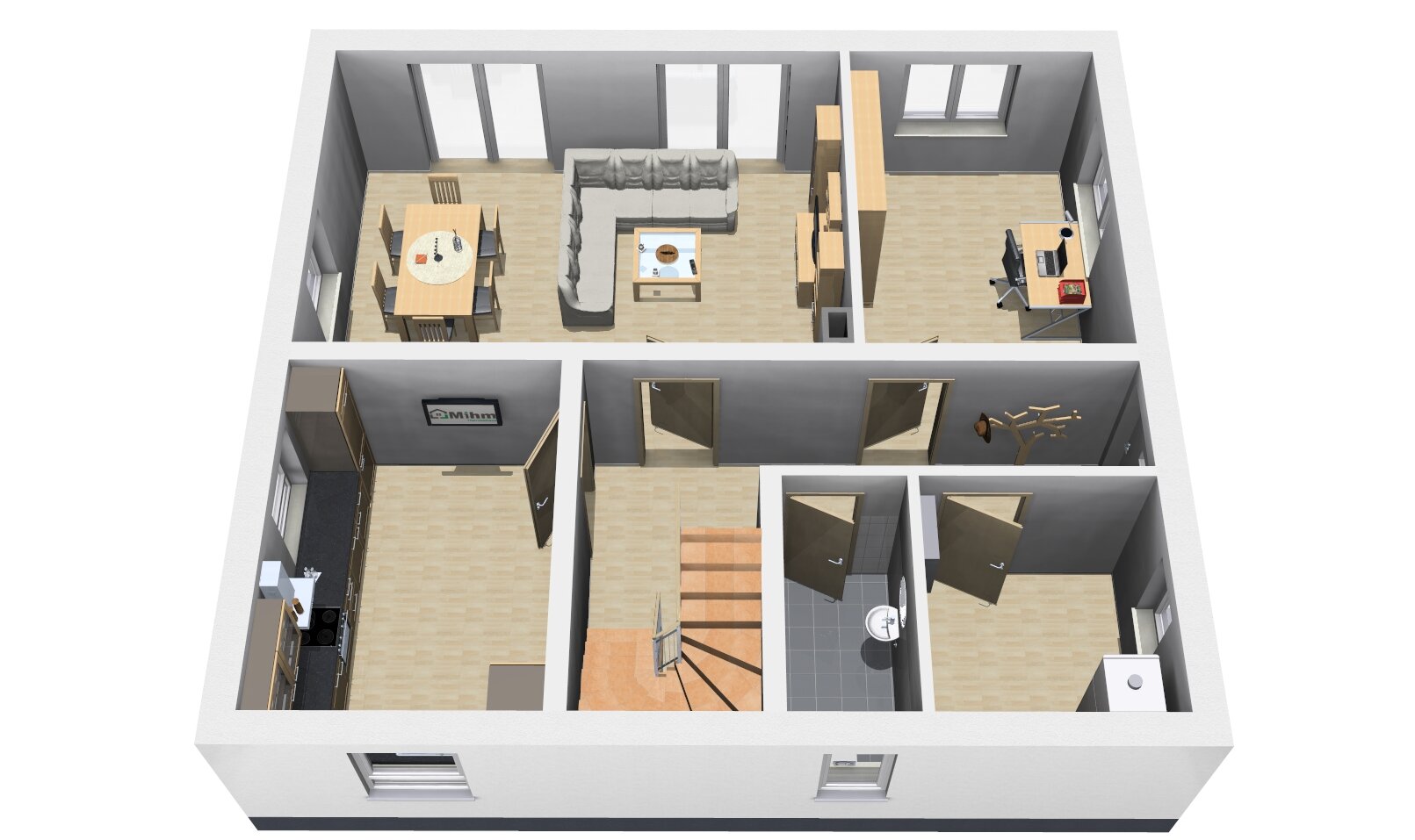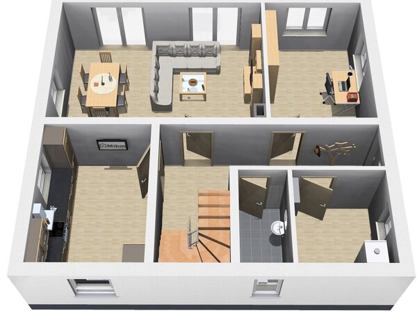 Dank des Arbeitszimmers im Erdgeschoss können Sie flexibel von zu Hause aus arbeiten, ohne dabei auf Komfort und Ruhe verzichten zu müssen.