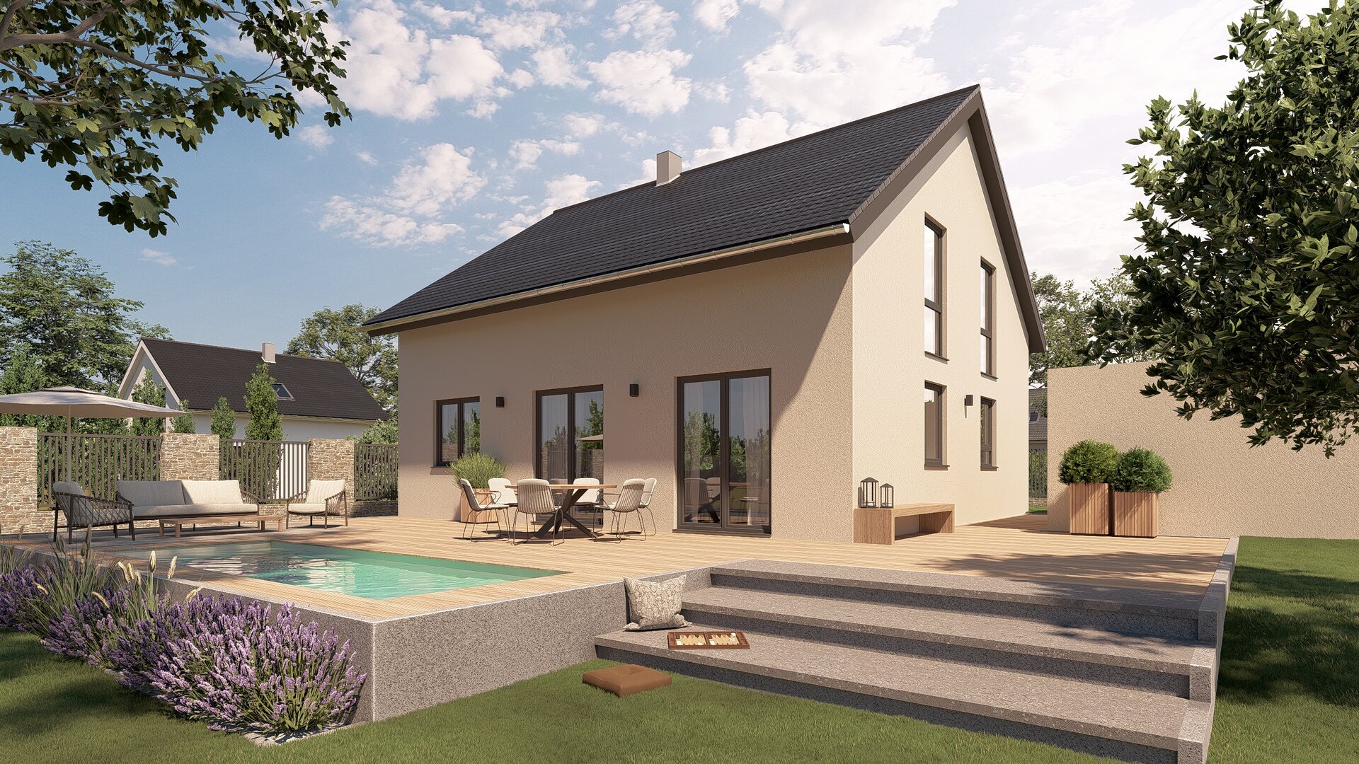 Mit seinen durchdachten Grundrissen und Design ist es ideal für Familien, die Wert auf ein zeitgemäßes Wohnkonzept legen.