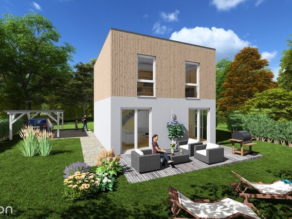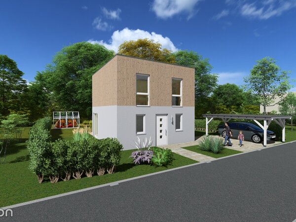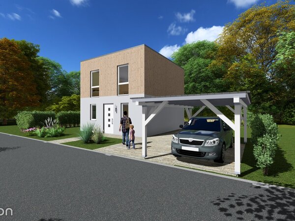 Dieses Einfamilienhaus mit Flachdach wird auch gerne als Doppelhaushälfte geplant.