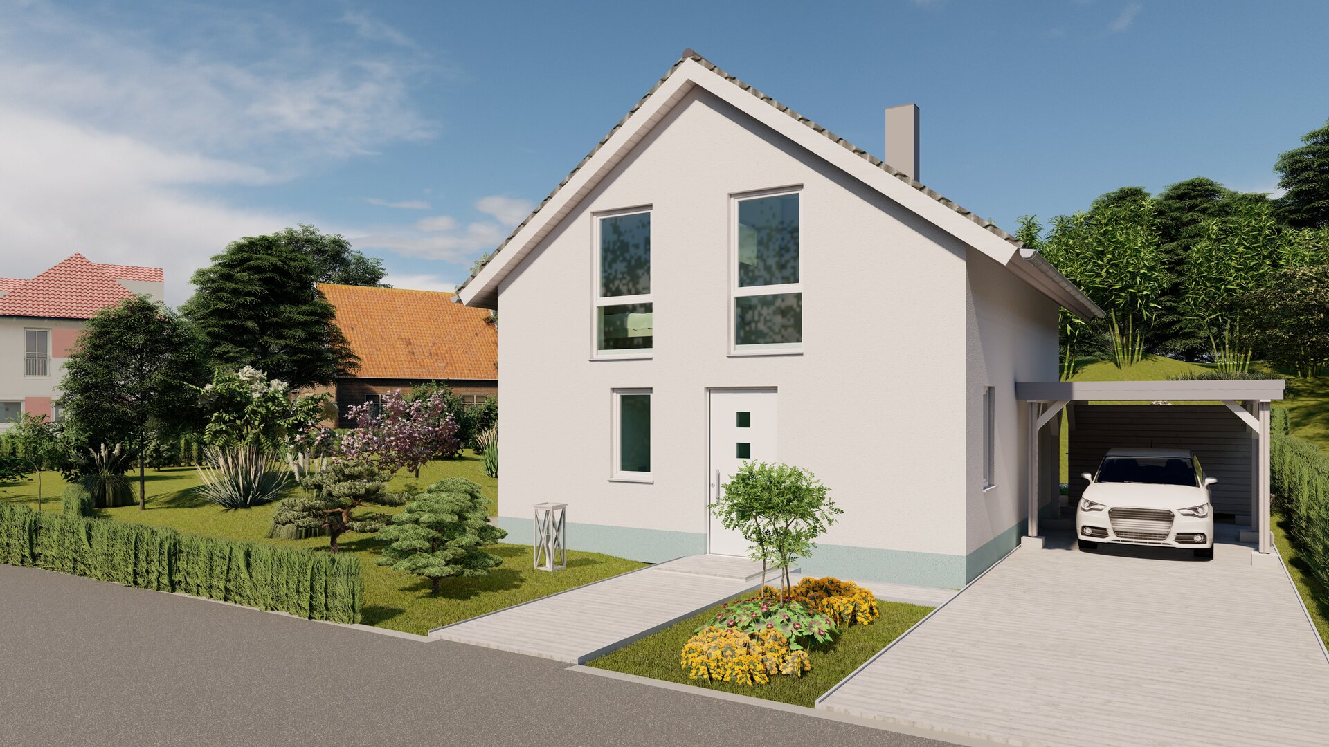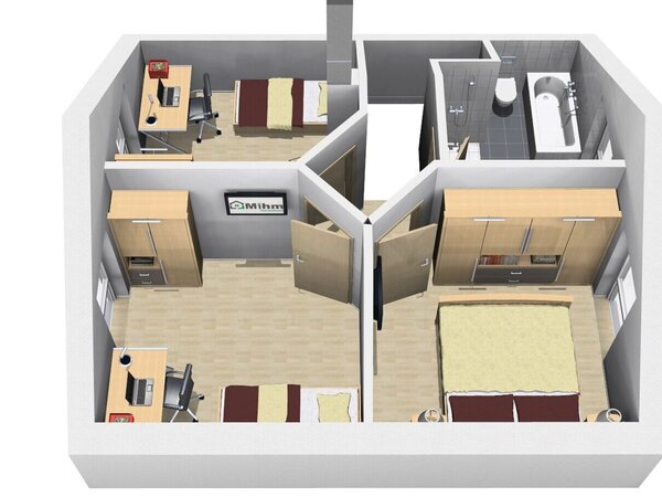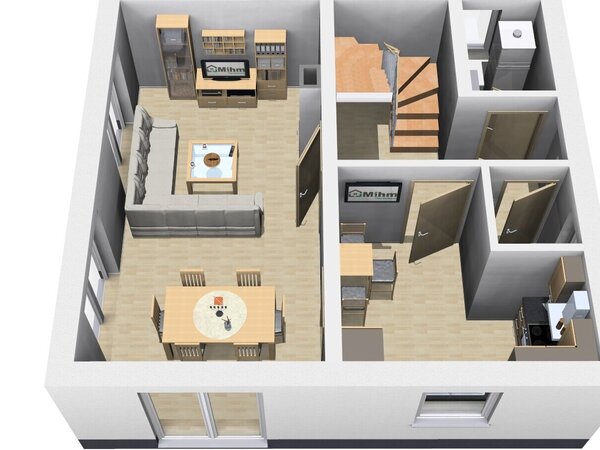 Trotz der kompakten Größe des Hauses bietet es ausreichend Platz für alle Bewohner und ermöglicht ein komfortables und funktionales Wohnen auf zwei Ebenen.