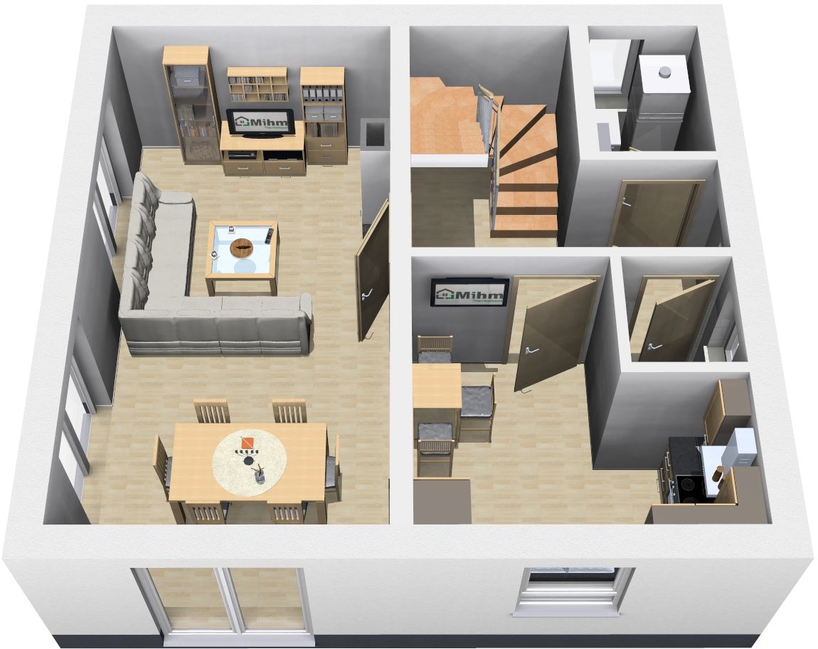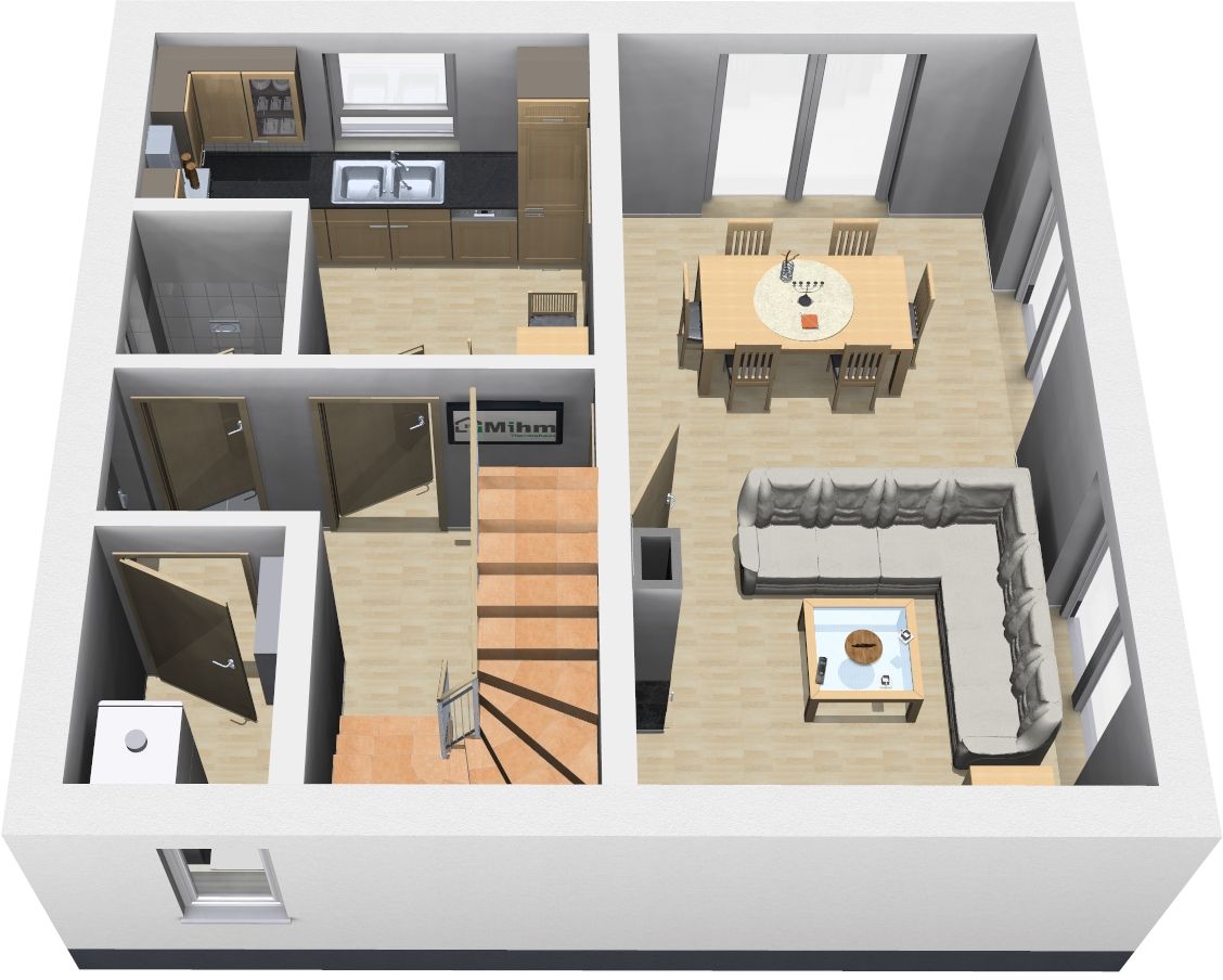Trotz der kompakten Größe des Hauses bietet es ausreichend Platz für alle Bewohner und ermöglicht ein komfortables und funktionales Wohnen auf zwei Ebenen.