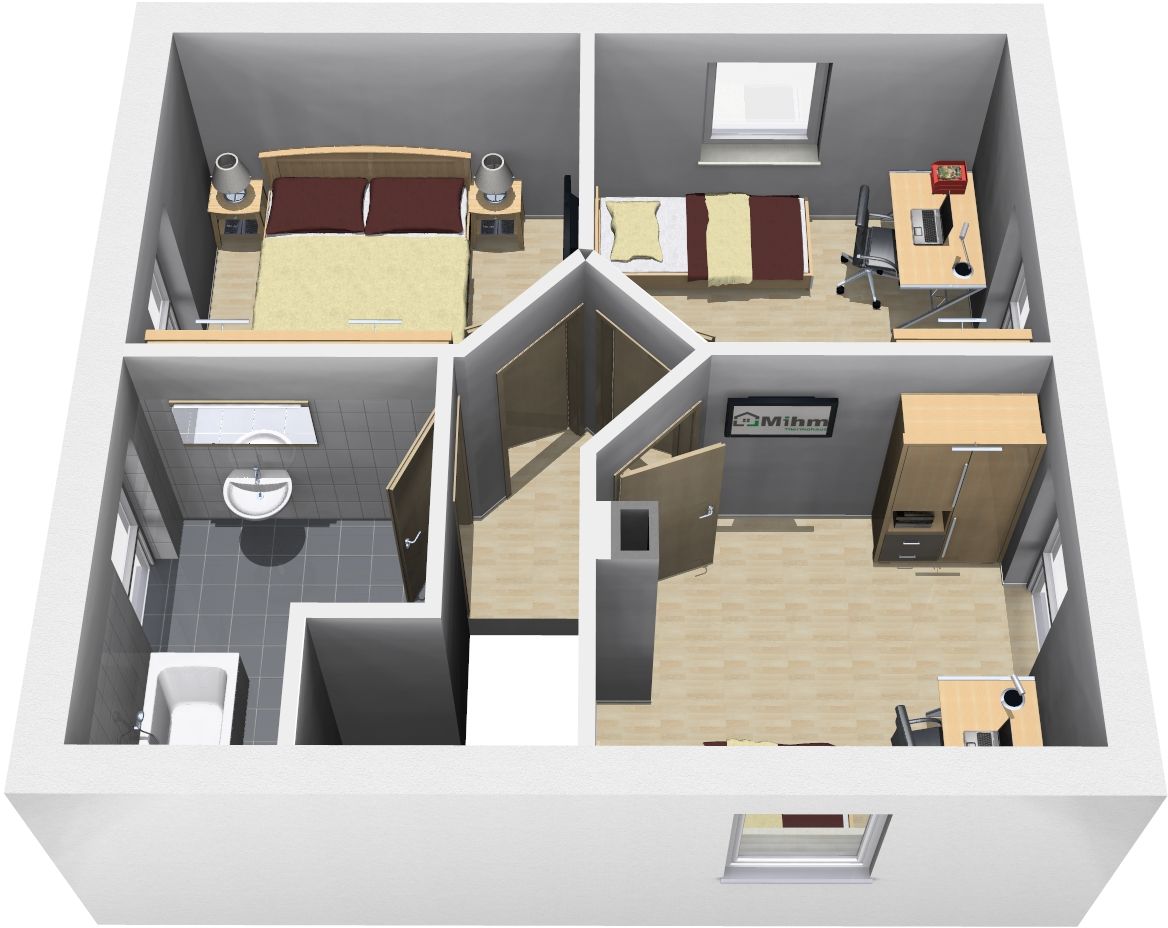 Die intelligente Raumaufteilung und die großzügigen Fenster sorgen für eine angenehme Wohnatmosphäre und lassen viel Tageslicht in die Räume.
